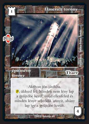 Elmerült torony (8): Kifejezetten olcsón - mondhatni ingyen - takaríthatjuk le a sok-sok nem-lény lapot az asztalról, sebzünk mellette az ellenfélbe, akinek ráadásul még le is eshet pár lénye. Nekünk mindezért csak egy lényünket kell elforgatnunk; annyi baj legyen, majd olyan pakliba rakjuk be, amiben azért akadnak szép számmal. Arra azért érdemes figyelni, hogy ne pakoljuk tele mis is nem-lény lapokkal az asztalt, mert azokat is leszedi.
