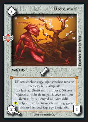 Éltető morf (6): Hosszú idő után egy újabb morf jelent meg. Mostanában nem terem túl sok babér az etnikum pakliknak, s ezen nem hinném, hogy az Éltető morf fog változtatni. Általánosságban valami hatékonyabb dologra vágyok, nem pedig arra, hogy a lényeimet aktivizálhassam. Ha eleve passzívan jönnek, akkor az azt jelzi, hogy maga a pakli kissé lassúcska. Ha találunk olyan etnikumot, ahol el kell forgatni a lényeinket, akkor jól jöhet.