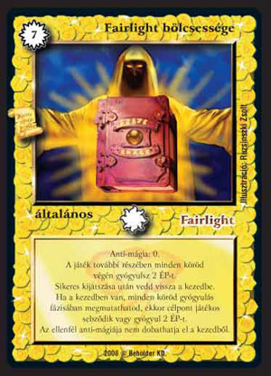 Fairlight bölcsessége (9): Rendkívül vitatott lap volt végig a tesztelés folyamán. Sokáig nem adódott össze kettő, úgy szerintem elég gyatra volt; szerencsére ezt a többiek is így gondolták. Ekkor meg erősnek tűnt, néhány extrém húzás miatt (pl. amikor első körben két-három bölcsességet felhúzott valaki), de végül mindenki belátta, hogy erre igen csekély esély van. Mindenesetre elsőre abszolút hihetetlennek és túl erősnek tűnik a körönkénti ingyen sebzés (vagy gyógyulás). De ha jobban belegondolunk, önmagában tíz kör alatt nyerünk vele csak, s a játék elején annyira nem feltétlen hasznos, hisz nem tudunk tőle kiépülni, vagy az ellenfelet ebben akadályozni. A kijátszáskori képessége is érdekes, meccseket nyerhetünk ezzel a gyógyulással, de azért tegyük hozzá, hogy nagyon soká fogja behozni az árát. Bátran használjuk szinte bármilyen pakliba, még ha csak egy darabunk van belőle.