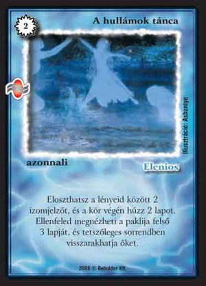 Elembivos (6): Nagy befektetéssel, egy kis kockázattal körönként dobathatunk egy általunk választott lapot. Mivel többnyire sok olcsó lappal játszanak, jó eséllyel ingyen fogunk dobatni. Sajnos benne van a komoly bukás lehetősége is, hisz elehet, hogy eltékozlunk négy varázspontot azért, hogy megnézzük az ellenfél kezét.
