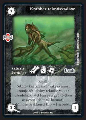 Kegyetlen krabber (8): Nohát, egy újabb etnikum. Sose baj, ha újabb törzsek települnek a HKK világába. A krabberek passzívan jövő agresszív lények, természetesen különféle trükkökkel vannak felszerelve, hogy a keményebb küzdelmeket is diadallal zárhassák. Legnagyobb fegyvertényük a háló, mely mindegyikükön szerepel. Ez minden bizonnyal igen sok paklit zavarni fog. Kegyetlen barátunk leszedésben és védelemben jeleskedik, igaz megkéri az árát a ténykedéséért. Szerintem nem a legjobb, leszedésként talán még a krabber pakliban is jobban működik A sötét vizek ura, védelemnek is kissé silány, csak varázslatoktól véd, s csak azoktól, melyek egy lényt céloznak. Még dobatni is tud. Az a rész nem tűnik jó biznisznek. Egyetlen komoly érv szól a használata mellett, hogy a háló miatt szükségünk lehet ezekre a képességekre, legyen bármennyire is borsos az ára.