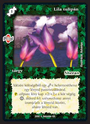 Lila tulipán (7): Sok lénnyel operáló paklik egyik tápja lehet. Ha sok lényt össze tudunk terelni, akkor csinálhatunk egy jó nagy, izmos kreatúrát , vagy több kisebbet. A kezdet fiaival és egyéb lénytermeléssel jól működhet. Az idézési költséget valószínűleg passzivizálással fogjuk kifizetni, hisz ugye lénypaklival játszunk. A +2/+2 adását ritkán fogjuk alkalmazni, hisz már két lénynél érdemes lehet bedobni a tulipánt, a két izom mégiscsak jobb.