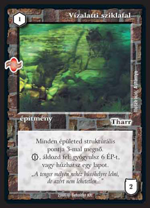 Vízalatti sziklafal (5): Ettől biztos nem fog szárnyakat kapni az épület pakli. A strukurális ponttal általában így sem volt probléma, ha gyógyulás kell, az már régen rossz egy ilyen gyors pakliba. A lap húzás már jobb egy fokkal, de azért kár berakni egy lapot, hogy a következő körben húzhassunk egyet.
