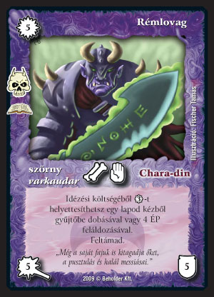 Rémlovag (8): Ritka az új varkaudar, mint a fehér holló. A Rémlovag előhírnöke a következő nagy kiegészítőben érkező többi társának, így újból számítani kell rájuk. Sötét manifesztációval igen tápos, hisz gyűjtőbe dobja a lapot - jelen esetben egy varkaudart, amit már használhatunk is fel. Az egy dolog, hogy az alfaja miatt jó, de azért vétek lenne elmenni amellett, hogy 2 VP- ért 5/5! Ez nem egy rossz üzlet, tekintve, hogy víziókat, Manaevő férget és egyebeket is hajigálhatunk neki - de ha nincs semmi dobni valónk, akkor ÉP- ből, vagy legrosszabb esetben VP-ért hozzuk. Ne feledjük, ha kettőt már olcsóbbítottunk rajta, s helyettesítve hozzuk, akkor jöhet nulláért is.