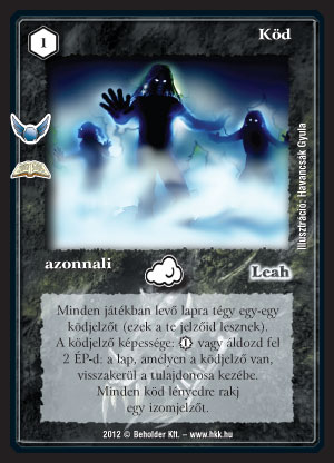 Köd (7): Kicsi befektetéssel ideiglenesen megoldhatjuk az ellenfél lapjait. Igaz a lapon kívül némi VP vagy ÉP-nk bánja - de ez az áldozat nem nagy, ha arról van szó, hogy megússzunk valami nagyon rosszat. Sajnos sokan játszanak mostanság olcsó lapokkal, így nem lesz akkora érvágás. További probléma, hogy sok lapnak van jó kijátszáskori képessége - azokat nem túl szívesen vetetjük majd vissza. Ködös pakliba érdemes berakni, hiszen kereshető. És még 1-2 izmot is nyerhetünk vele.
