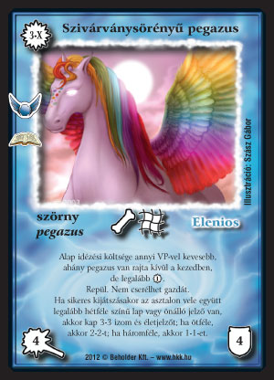 Szivárványsörényű pegazus (7): Ez már tényleg csak a pega pakliba lehet jó - oda is inkább a romantikus vonalat képviselő lény lesz. Nyilvánvaló, hogy ritkán lesz tele izommal, szerintem már az 1-1 izomnak és életnek is örülhetünk. De ha ezt 1 VP-ért kapjuk, akkor már semmi okunk a panaszra. És ez is hálós.