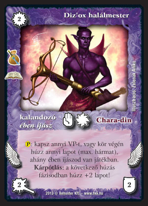 Diz'ox halálmester (8): Csak azért nem kap több pontot, mert az ében íjász paklinak még kell némi erősítés. (Ami nem is késik a novemberi kiegészítővel.) A lap önmagában meglehetősen erős, csak létre kell jönnie (ebben segíthet pl., ha Antimágikus rakshallionnal játszunk). Igen jó erőforrás, már saját maga után is húzgálhatunk vele, az ősmágiás VP-termelgetés segíthet a drágítások ellen, és a kárpótlása is jelentős. Ja, és szép a képe is!
