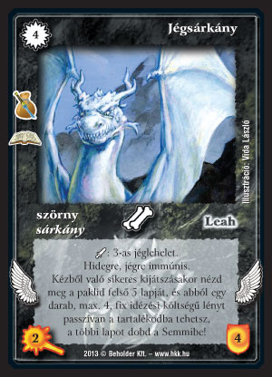 Jégsárkány (9): Emiatt a lap miatt be kell gyömöszölnünk a feketét a Kragoruba! Ez még a járjas verzióba is befér, és ha megfelelő számú mágikus védelmű lénnyel játszunk, akkor gyakorlatilag biztos, hogy találunk legalább egy lényt a felső ötből, ami ingyen játékba kerül. Pl. ha a paklink fele mágikus védelmű lény, akkor mintegy 97% az esély erre. Általában még válogathatunk is. A max. fix 4 költség azért a legtöbb lényünkre igaz lesz. Ha csak annyira használjuk, hogy ütünk vele, plusz leszedünk két lapot a két lénnyel, 2 VP-ért már az is elég jó üzlet volt. Ha nincs követőnk, akkor nagyon legyengül, de erre már javasoltam megoldásokat, és az említett későbbi Rhatt lény is jó lesz rá, ha megvalósul. Másik ugyanilyennel nem kombózik össze, mert kézből kijátszást néz, de Zankígyót vagy Psychiofeatát jó vele kirakni. Arra azért figyeljünk, hogy a kirakott lény passzívan jön.