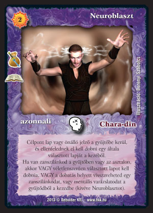 Neuroblaszt (8): Zanszilánk pakliba mindenképp érdemes legalább kettőt berakni, ha befér a lila. Csak azért nem tennék hármat, mert célpont lap kell hozzá, és mert akkor működik igazán jól, ha van zanszilánkunk az asztalon vagy a gyűjtőben. Igen kellemes lapelőnyt biztosít meglehetősen olcsón. Két zanszilánkért leszedni, plusz véletlenszerűen dobatni vagy visszavenni, ez komoly érv a lila szín használata mellett, ahol vannak azért még más jó zanszilánkos lapok, pl. a Fertőzött szentély, az Időzített gomba vagy a Sugárzó ősanyag.