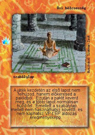 Szöveg: A játék kezdetén az első lapot nem felhúzod, hanem előkeresed a paklidból. Ezután a paklit keverd meg, és a többi lapot normálisan húzd fel. Emellett a szabálylap mellett nem használhatsz követőt, és nem kaphatsz VP-t ÉP áldozás eredményeképp.