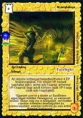 | (AK61) Ha két Aranybányám van játékban, akkor is csak annyi komponenst kapok, amennyi varázspontot kapnék. Az Aranybányák hatása nem adódik össze, ahogy az Átcsoportosításé sem. | | (AK61) Nem kaphatok komponenst a második körben, ha az elsőben kijátszottam egy Aranybányát, mert a bánya csak az előkészítő fázis végén lesz aktív, amikor már megkaptam a varázspontot, és az épületek képességei csak aktívan működnek. |