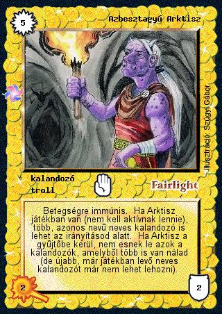 Szöveg: Betegségre immúnis. Ha Arktisz játékban van (nem kell aktívnak lennie), több, azonos nevű neves kalandozó is lehet az irányításod alatt. Ha Arktisz a gyűjtőbe kerül, nem esnek le azok a kalandozók, amelyből több is van nálad (de újabb, már játékban levő neves kalandozót már nem lehet lehozni).