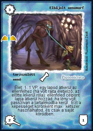 Szöveg: Élet: 1. 1 VP, egy lapod átkerül az ellenfélhez (ha volt rajta életjelző, az előtte lekerül róla): ellenfeled célpont lapja átkerül hozzád, ha lény volt, passzívan a tartalékodba kerül. Ezt a képességet körönként max. kétszer használhatod, és csak a saját körödben.