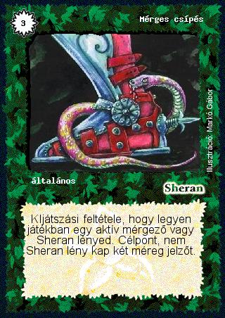 Szöveg: KIjátszási feltétele, hogy legyen játékban egy aktív mérgező vagy Sheran lényed. Célpont, nem Sheran lény kap két méreg jelzőt.
