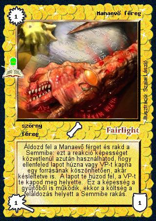 | (AK149) Meg kell mutatnom a húzott lapokat, ha egy Manaevő férget használtam, amikor az ellenfelem Sakitával húzott lapot. A Manaevő féreg pontosan úgy húzatja a lapokat, vagy adja a varázspontot, mint ahogy azt az eredeti lap tenné. Ha Sakita húzását lopja el a féreg, akkor nem csak, hogy meg kell mutatni a húzott lapokat, hanem el is kell dobni a Chara-din, Fairlight és Elenios kártyákat.