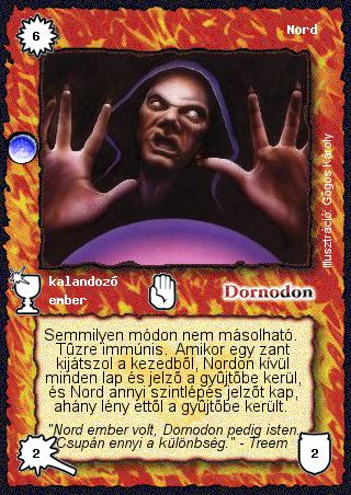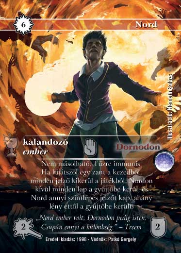 Szöveg: Semmilyen módon nem másolható. Tűzre immúnis. Amikor egy zant kijátszol a kezedből, Nordon kívül minden lap és jelző a gyűjtőbe kerül, és Nord annyi szintlépés jelzőt kap, ahány lény ettől a gyűjtőbe került.