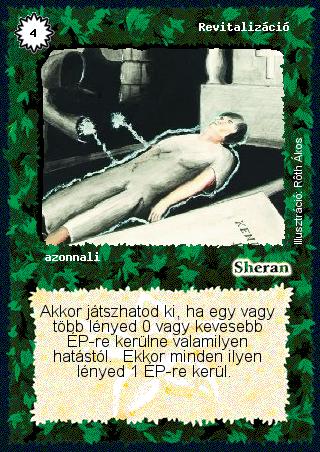 Szöveg: Akkor játszhatod ki, ha egy vagy több lényed 0 vagy kevesebb ÉP-re kerülne valamilyen hatástól. Ekkor minden ilyen lényed 1 ÉP-re kerül.