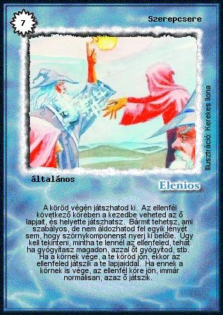 | (AK10) Nekem 3 ÉP-m van, az ellenfélnek 20. Kint van egy csomó lénye, nekem semmi. Kijátszok egy Szerepcserét. Beütök a másik játékos lényeivel, és megölöm. Nyertem? Nem. Vesztettél! "...Úgy kell tekinteni, mintha te lennél az ellenfeled, tehát, ha gyógyítasz magadon, azzal őt gyógyítod, stb..." Gondold ezt tovább. Ha sebzel rajta, magadat sebzed, ha megölöd, magadat ölöd meg. Igazából a Szerepcserénél arról van szó, hogy az ellenfél körében te játszol a lényeivel és a lapjaival, ill. ezután fordítva, de a paklitok "tulajdonjoga" nem cserél gazdát. Hasonlóan a játékban alkalmazott fogalmakhoz, a Szerepcserénél egy körre te leszel az ellenfél paklijának a gazdája, de nem a tulajdonosa: ha a pakli veszít, a tulajdonosa veszít, hiába más a gazdája az adott pillanatban. | | (AK11) Amikor kijátszod a Szerepcserét, nemcsak te játszol a következő körben az ellenfél lapjaival, hanem eközben már az ellenfél is átül a te helyedre, és ő pedig helyetted játszik. Tehát ha valamit kihozol, az ellenfeled a te lapjaidból reagálhat! Ezután jön még egy kör, amit így játszotok le, ekkor az ellenfél lesz az aktív játékos, a te pakliddal, és te reagálhatsz az ellenfél lapjaival. | | (AK20) Mi történik, ha Szerepcsere közben kijátszok egy újabb Szerepcserét ? A fenti modellből kiindulva, a dolog nagyon egyszerű: ha olyan kőre akarunk X-et rakni, amin már van, akkor ehelyett leradírozzuk róla. (Vagyis, ha egy kör két ellentétes játékos Szerepcseréjének hatása alatt áll, akkor a játékos normálisan, a saját lapjaival játszik.) Természetesen, ha valaki olyan gügye, hogy csakis az összezavarás kedvéért egy körben több Szerepcserét játszik ki, azt nyugodtan nevessük ki, és tekintsük úgy, mintha csak egyetlen Szerepcserét játszott volna ki. | | (AK20) Mi történik, ha valaki Szerepcsere közben kijátszik egy Az idő kerekét vagy egy A kockázat árát ? Hmmm... Ha azt akarjuk, hogy a különböző, köröket adó és köröket elvevő lapok miatt ne váljon a Szerepcsere működése egyetemi tananyaggá, sürgősen keresni kell egy szemléletes modellt. Tekintsük a körök egymásutánját kék és piros kövek sorának. A te köreid a kék kövek, az ellenféléi a piros kövek. Az éppen soron levő kő ragyogó fénnyel villog. Amikor kijátszol egy Szerepcserét, akkor a következő piros és a következő kék kőre a köröd végén egy nagy fekete X kerül. Ha valakinek X-es kő jelöli a körét, akkor a másik játékos játszik helyette. Eddig remélem világos. Ha valaki kijátszik egy Az idő kerekét, akkor közvetlenül az ő köve után megjelenik egy ugyanolyan színű kő. Ha valaki kijátszik egy A kockázat árát, akkor kivesszük a sorból a következő olyan színű követ, ami az ő körét jelöli. A fenti modellt mindenki képzelje el, esetleg rakja ki, és próbálgassa ki az összes lehetséges kombinációt, tetszőleges számú és időpontban kijátszott A kockázat árák és Az idő kerekék használatával, és megdöbbenéssel fogja tapasztalni, hogy a teendő egyértelműen leolvasható a modellről. | | (AK23) Ha Szerepcsere alatt helyszínt akarsz keresni az ellenfél paklijában, akkor az ellenfeled nem köteles megmondani, hogy van-e síkja a pakliban. Ha úgy döntesz, hogy mégis keresel, és nem találsz, akkor elköltötted a 3 VP-t, és nem húzhatsz lapot. | | (AK3) Ha Szerepcsere alatt elmondok egy Az idő kerekét, ismét te következel, vagyis az a játékos, akivel éppen helyet cseréltél, nem ül vissza a helyére. Az idő kerekével kapott plusz kör után jön a másik játékos. |