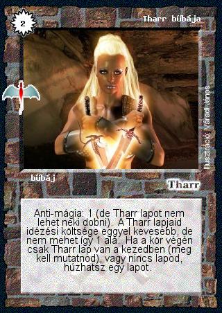 Szöveg: Anti-mágia: 1 (de Tharr lapot nem lehet neki dobni). A Tharr lapjaid idézési költsége eggyel kevesebb, de nem mehet így 1 alá. Ha a kör végén csak Tharr lap van a kezedben (meg kell mutatnod), vagy nincs lapod, húzhatsz egy lapot.