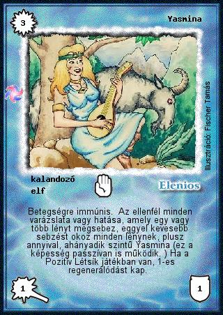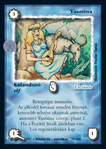 Kiadás: Létsíkok, Túlélők Földje Gyakoriság: nem gyakori Lapszín (isten): Elenios Típus: kalandozó Altípus: elf Szöveg: Betegségre immúnis. Az ellenfél minden varázslata vagy hatása, amely egy vagy több lényt megsebez, eggyel kevesebb sebzést okoz minden lénynek, plusz annyival, ahányadik szintű Yasmina (ez a képesség passzívan is működik. ) Ha a Pozitív Létsík játékban van, 1-es regenerálódást kap. Illusztráció: Fischer Tamás
