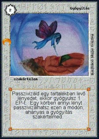 Kiadás: Chara-din visszatér, Túlélők Földje Gyakoriság: gyakori Lapszín (isten): Színtelen Típus: szakértelem Szöveg: Passzivizáld egy tartalékban levő lényedet, ekkor gyógyulsz 1 ÉP-t. Egy körben annyi lényt passzivizálhatsz ezen a módon, ahányas a gyógyítás szakértelmed. Illusztráció: Mojzer Krisztina
