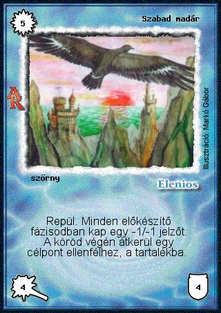 Kiadás: Alanori Krónika Gyakoriság: ritka Lapszín (isten): Elenios Típus: szörny Szöveg: Repül. Minden előkészítő fázisodban kap egy -1/-1 jelzőt. A köröd végén átkerül egy célpont ellenfélhez, a tartalékba. Illusztráció: Markó Gábor