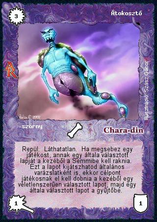 Szöveg: Repül. Láthatatlan. Ha megsebez egy játékost, annak egy általa választott lapját a kezéből a Semmibe kell raknia. Ezt a lapot kijátszhatod általános varázslatként is, ekkor célpont játékosnak el kell dobnia a kezéből egy véletlenszerűen választott lapot, majd egy általa választott lapot a gyűjtőbe.