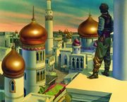 A mesés Szithan birodalom fővárosának (ahol az emberélet olcsó, de az elefántcsont drága) látképe egy nemesi palota erkélyéről.