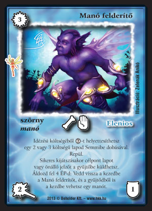Manókapitány (8): A manóseregek valódi vezére, őt akarjuk majd először kijátszani. A képességének a költsége, a három lap gyűjtőbe dobása a pakliból már önmagában táp, akár a manó követőre, akár a Manó felderítőre gondolunk. A hatása pedig csúnya nagy odaütésekhez segíti manócskáinkat, vagy épp megmenti őket az ellenfél körében. Az, hogy gyűjtőből dobással is lehet olcsóbbítani, jól jöhet pl. a második kapitány kijátszásakor, amikor ez első már betermelte a gyűjtőnket rendesen. Esetleg gyűjtőgeneráló pakliba is be lehet próbálni, Háromért kvázi 6/2, repül, és nagy körönként 6 lapot termel a gyűjtőnkbe. Ha esetleg Fenyőőr manót is használunk, még olcsóbban is jöhet. A kárpótlása már csak hab a tortán.