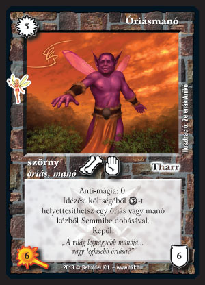 Óriásmanó (8): Mind óriás, mind manó deckbe berakandó lap. Csak üt, de azt gyorsan és elszántan teszi. Óriás követővel simán kijön első körben is (ha nem játszunk Bűvös erdővel), counterelni nem lehet, és ha egyszer beütött, az ellenfél nem könnyen szedi le a követőnket, ami ebben a pakliban elég fontos. A követővel a második körben viszont 2 Bűvös erdő mellett is kijön akár óriás dobása nélkül! Manó pakliban is igen hasznos, ott is lehet Bűvös erdővel próbálkozni.