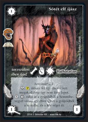 Sötét elf úrnő (8): Egy újabb ében íjász, amit többnyire nem az etnikumával együtt látunk majd. Az élet: 2 képesség már predesztinálja, hogy életes pakliba érdemes bevetni. Halhatatlanok nagymestere mellett próbáltam a tesztelés alatt, elég jó volt. Kissé drága 3 VP-ért, de a nagymester mellett 3 lapot old meg, és ráadásként marad egy lényünk is. Kár, hogy a legnépszerűbb, legerősebb vonalba, a Hegymélyi keltetősbe nem passzol, mivel repül. Ennek ellenére szerintem látjuk majd néhány a versenyasztalokon néhány formátumban. A fejfa szövege: Szárnyalt volna a paklim, ha nem lett volna szárnya!